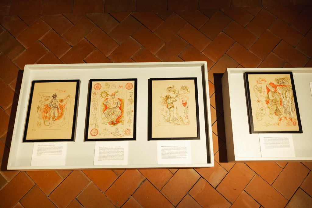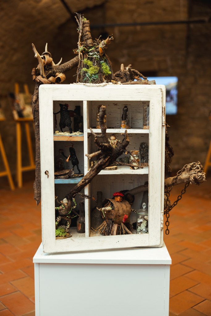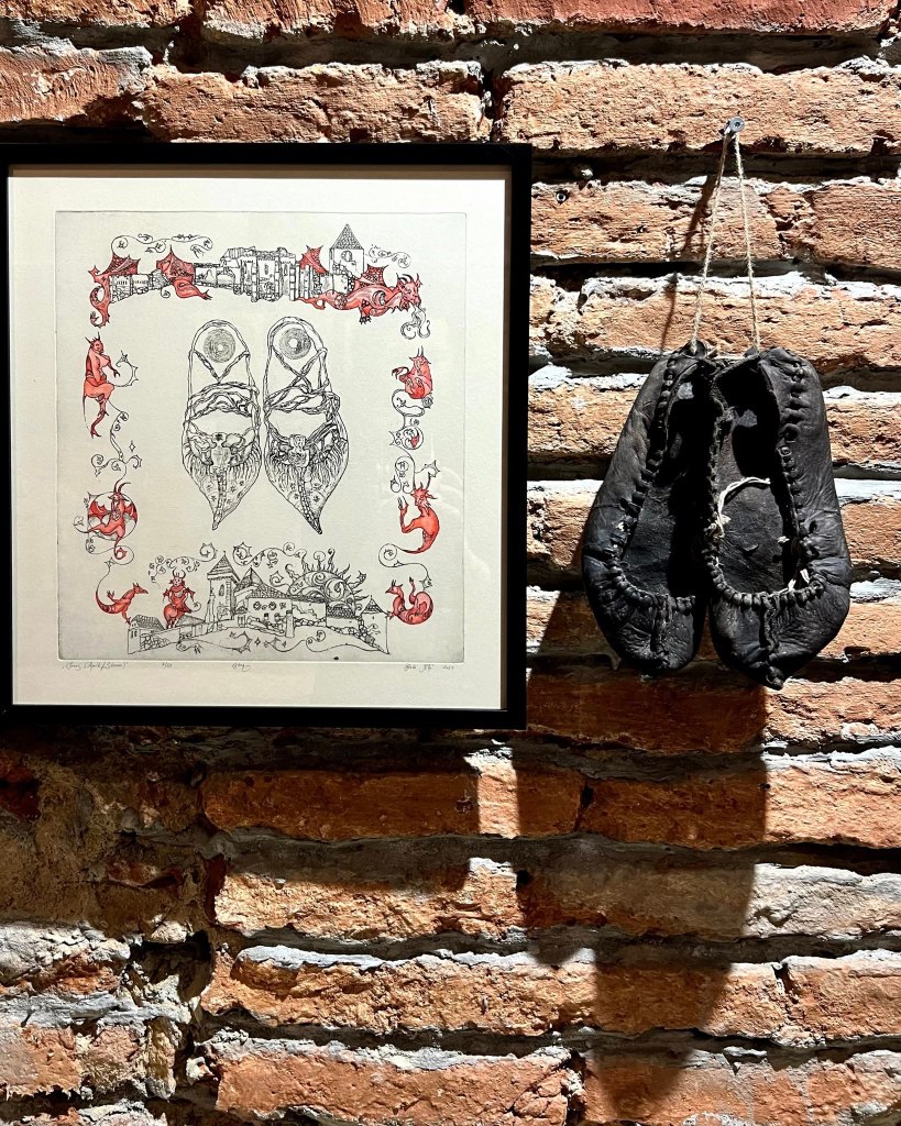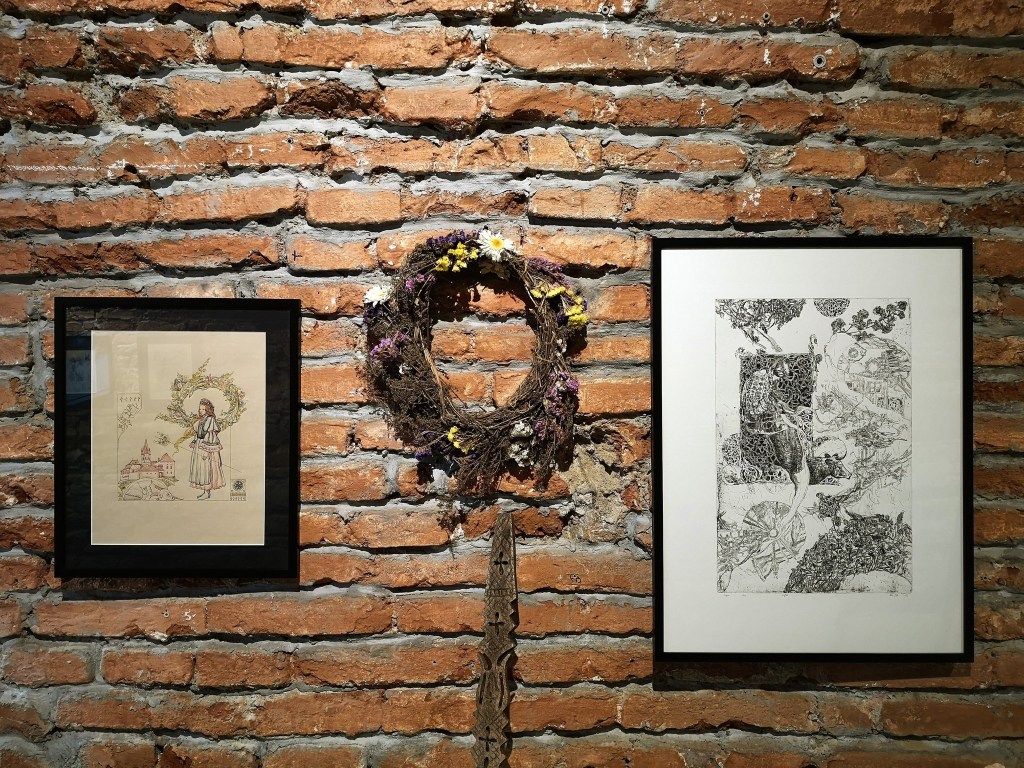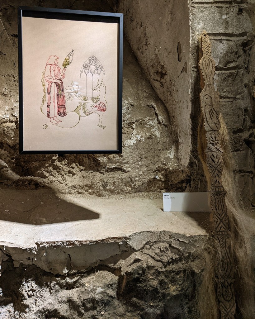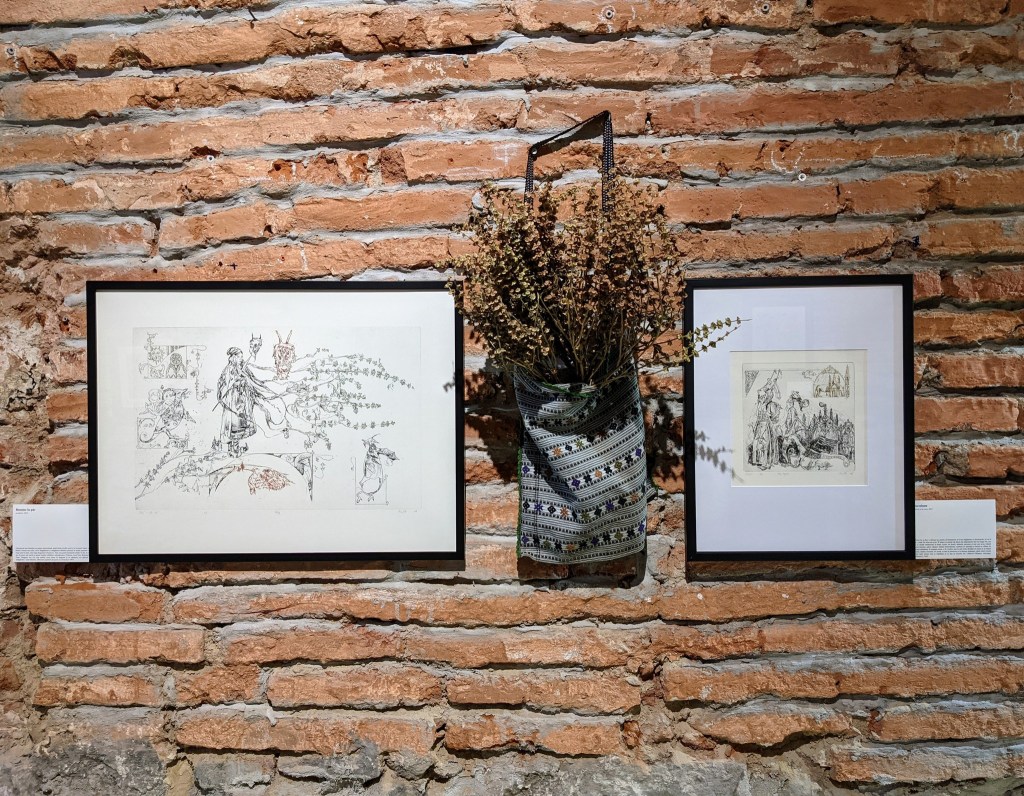 Rooted in ethnographic and anthropological research on the protective and magical functions of traditional Romanian household objects, this exhibition reimagines ancient folk beliefs within a contemporary artistic framework. Through etchings, pen drawings, and installations, the artist conjures a bestiary of witches, spirits, and demons — tamed by the presence of rural tools such as spindles, distaffs, and hemp. Complemented by symbolic plants like sânziene and basil, as well as by objects of travel such as traditional shoes (opinci) and bags, the show becomes a journey through memory, identity, and ancestral protection. Paying homage to artist Mariana Gheorghiu, the project continues the dialogue between folk heritage and modern creation, curated by Liviu Bulea.