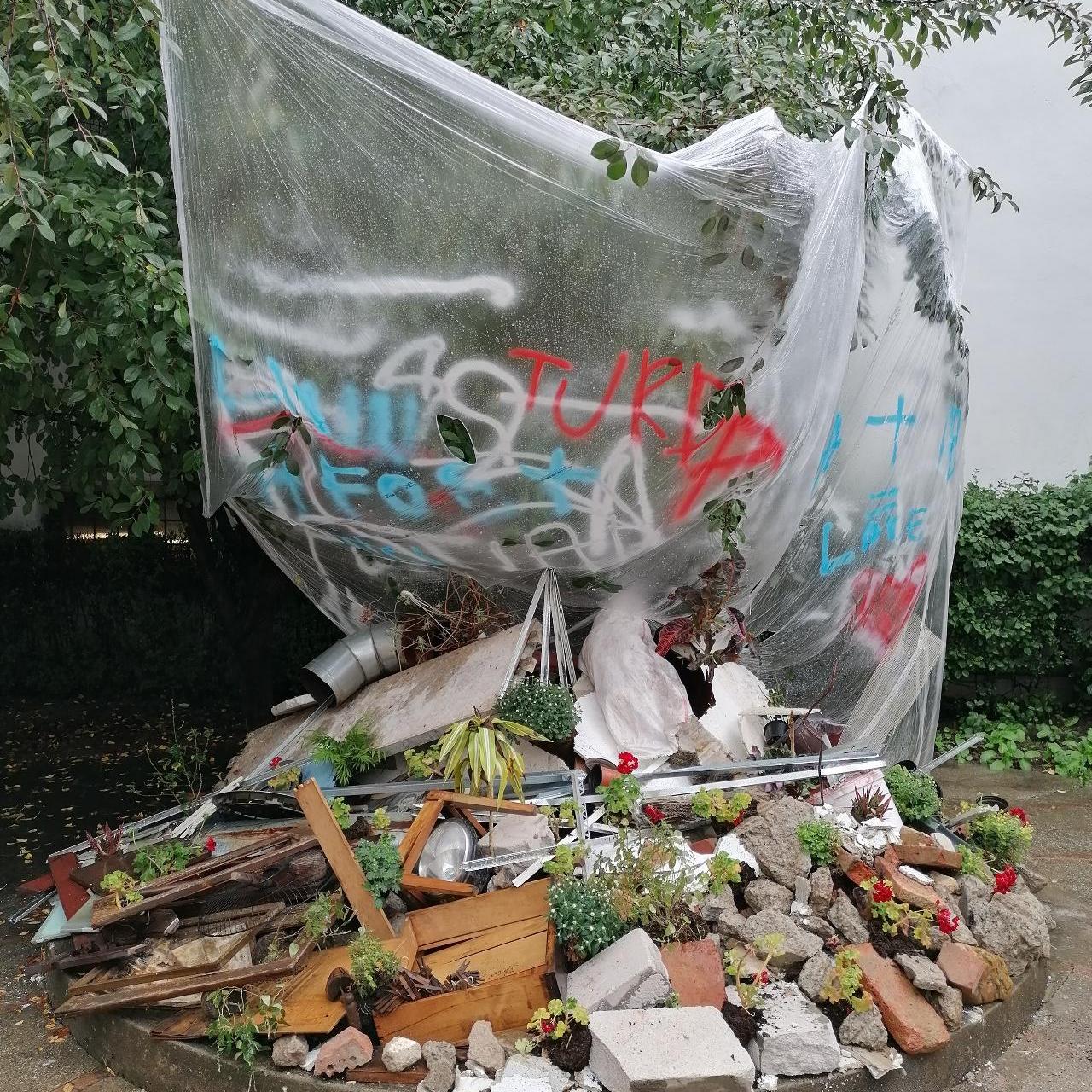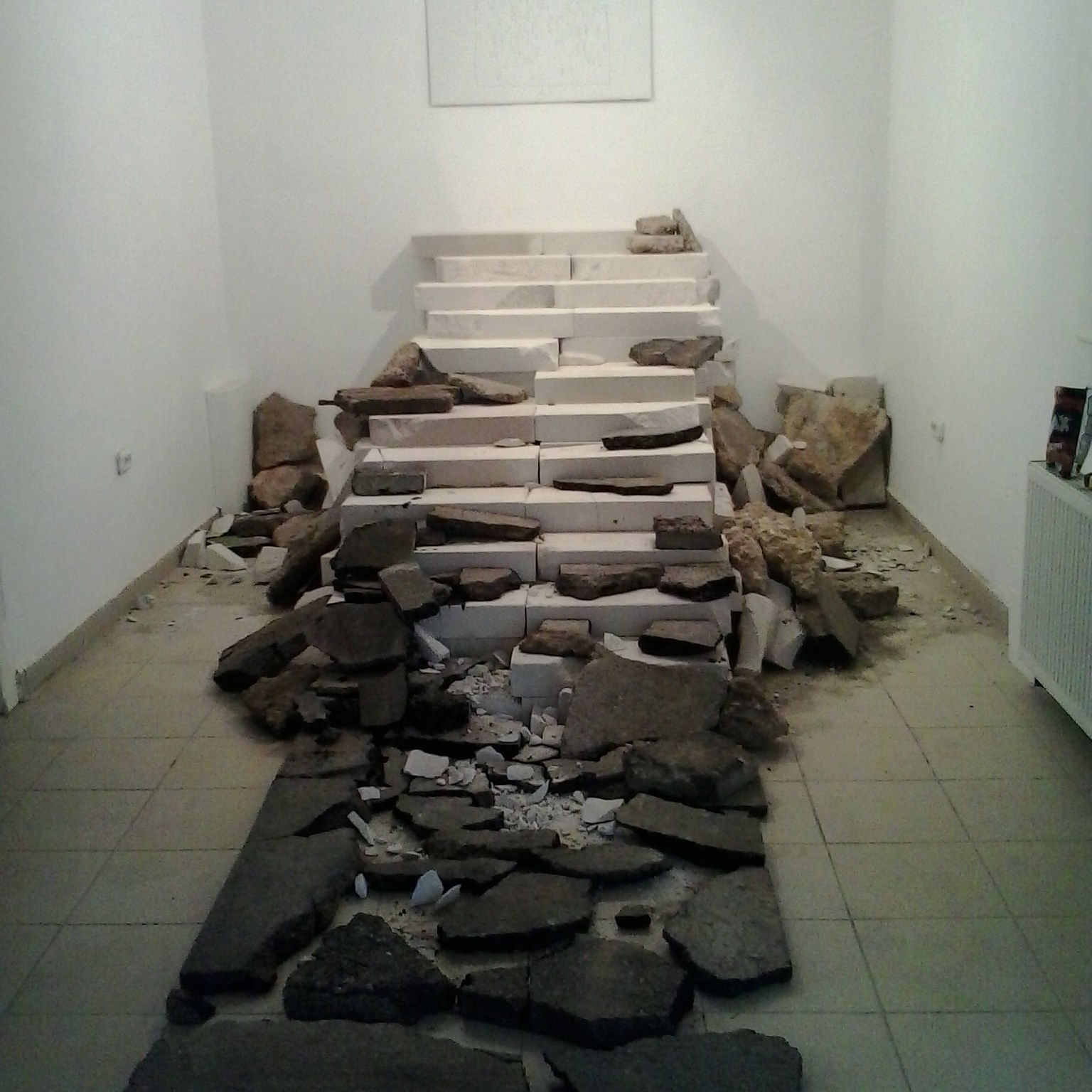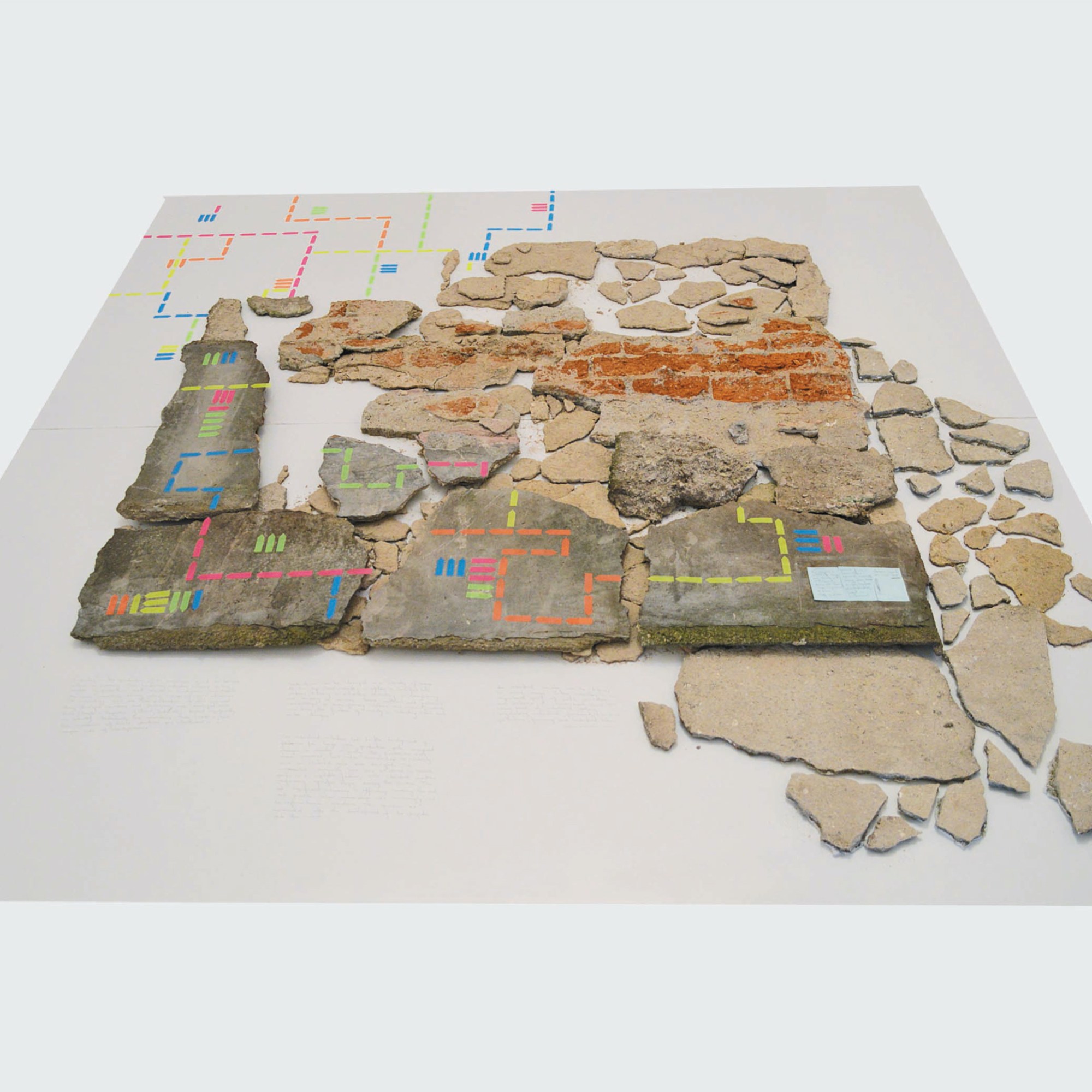 “Liviu Bulea can be considered “a social practice installation artist”. He recovers seemingly useless material fragments that come from precise contexts. The hospital’s wall where he was treated when he was an adolescent, the city’s sidewalk where he had grown up, and pieces of concrete from a mall that was built over a community. His staging mechanism is very deep and requires further research. The concrete dust covering his hometown is transformed into a painting or sculpture that recalls the trauma of a community deeply affected by post-revolutionary changes in Romania. In Turda, when it rained, the vegetables turned into concrete because of the cement dust expelled into the atmosphere by the nearby factory. Bulea depicts the traumatic process as an emotion-making installation that creates unusual attention to some social processes lost in selective memory.” – Răzvan Ion, curator