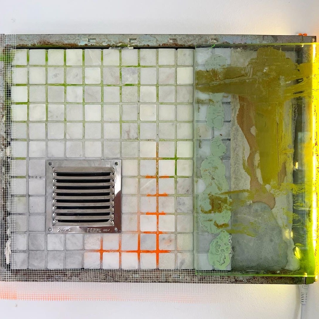 “Liviu Bulea perpetuates the interest in decrepitude, which he decontextualizes in order to reassemble it in forms that can be substituted for the exhibition space. In other words, the artist collects “rubbish” or pieces of what-was-once (packaging and wrappings, fragments of walls, pieces of rubble, plasterboard and fibreglass nets, but also windows from Berlin or Parisian street corners, grilles, handles, neon signs or other discarded and forgotten light signals in the common space, which the vast majority rigorously avoids) and uses them to create new elements. Perhaps we can talk about a certain aesthetic of the ugly, but not necessarily the one originally theorized by Karl Rosenkranz in the mid-19th century, but the one that surrounds us in the urban every day as a result of human passivity and indolence. Those places that we generally shy away from, which create today’s “badlands”, become the engine of the creative impulse, but also proof of the need to understand the world around us. […]” – Lina Țărmure, curator